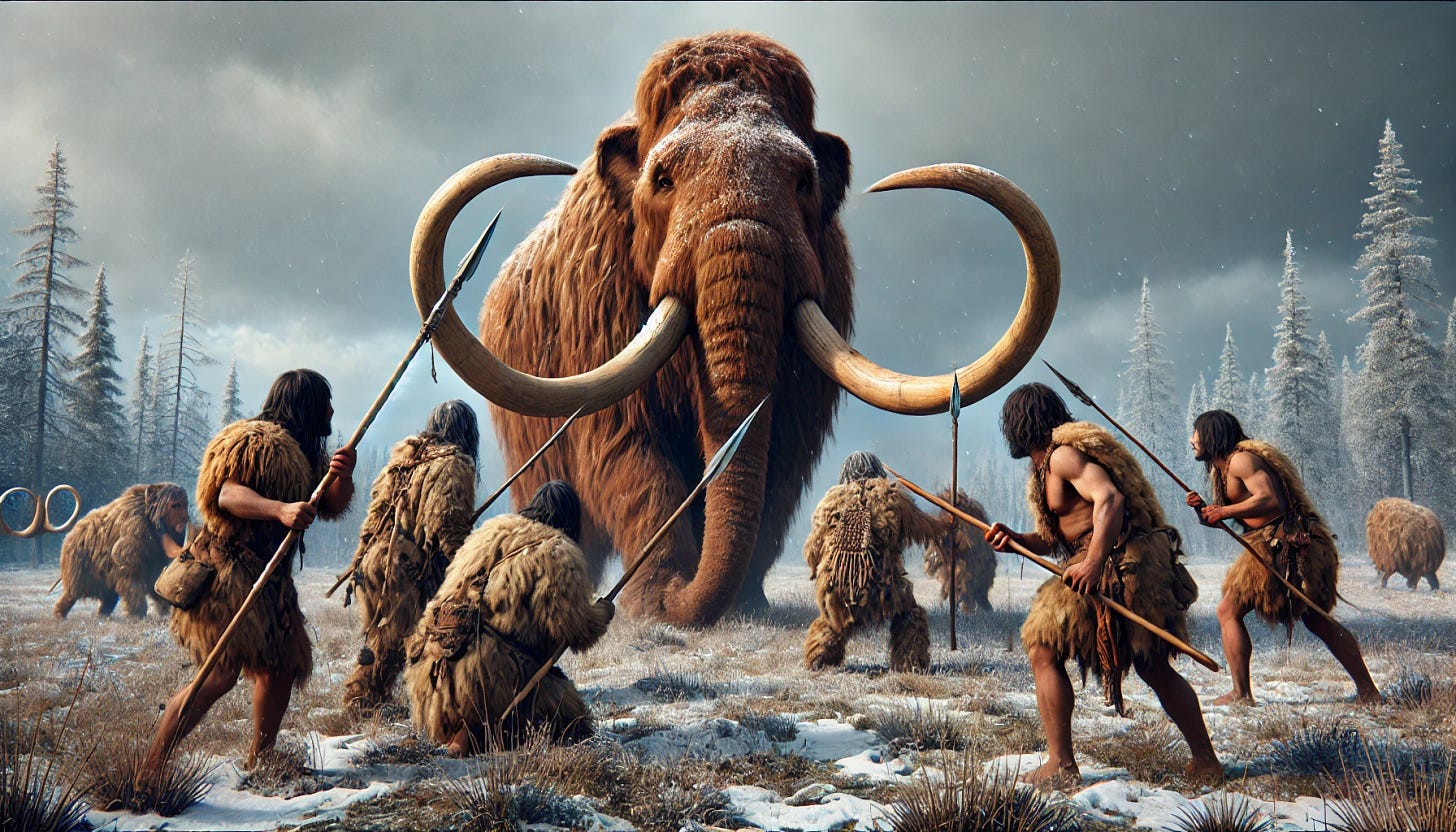 The Paleo-era lasted from 11,000 BC to 8,001 BC. They coincided with the Ice Age with them traveling to North America from Asia on the land bridge. This was a frozen over section of ocean between present-day Russia and Alaska. Given that, the Paleo were a very nomadic people, living in temporary shelters and camps rather than set structures. When it came to food, they were large game hunters, which included Ice Age mammals such as the mammoth. Their tools consisted of those made of stone and early spears.